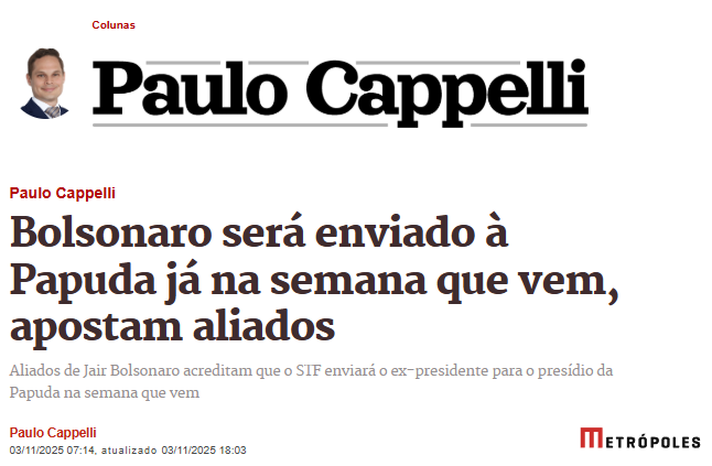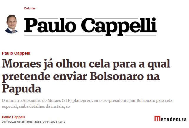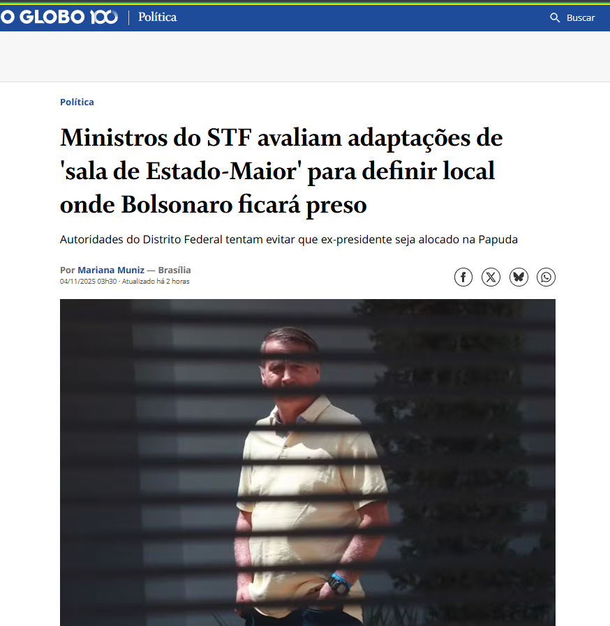 Ministros apontam que uma eventual ida de Bolsonaro para a penitenciária federal da Papuda, em Brasília, dependeria, a rigor, da existência de um espaço que possa oferecer essas condições ao ex-presidente. A peninteciária poderia, por exemplo, abrigá-lo em uma cela especial em uma ala reservada.