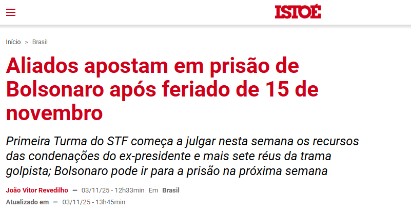 Injustiça: Mídia do Regime Lula fala em PRISÃO de Bolsonaro na próxima semana