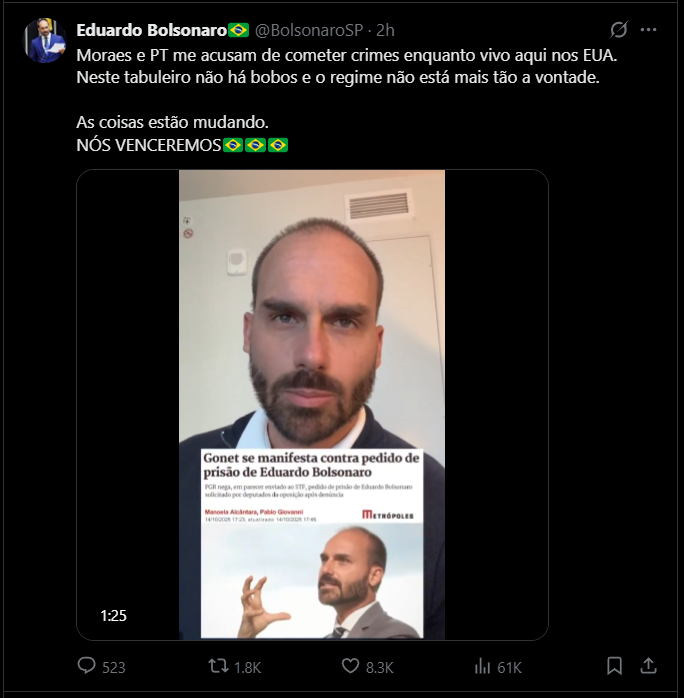 PGR É CONTRA pedido de PRISÃO de Eduardo Bolsonaro que se manifesta